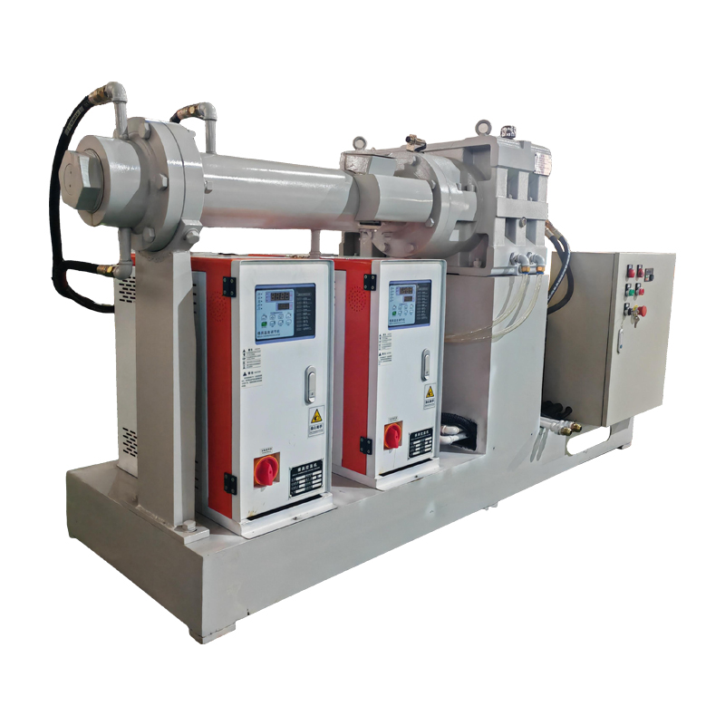 冷喂料擠出機(又稱橡膠冷喂料壓出機、銷釘式冷喂料擠出機、銷釘機筒冷喂料擠出機、主副螺紋冷喂料擠出機、冷喂料排氣擠出機、復合式冷喂料擠出機、普通冷喂料擠出機、冷喂料膠塊擠出機)是在常溫下直接吃入橡膠膠料,通過螺桿剪切、壓縮與溫控系統實現低溫塑化、排氣和連續擠出的關鍵設備。相比傳統熱喂料方式,它省卻了熱煉工序,能耗降低 20 %–35 %,膠料溫升低、焦燒風險小,已成為輪胎、膠管、密封條、電纜等橡膠制品高效生產的核心機型。