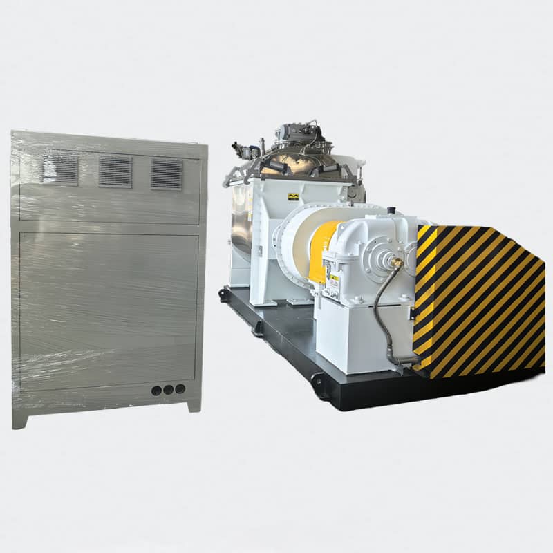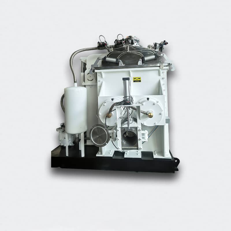 ? 真空/氮?dú)饨涌?,可在捏合階段完成脫泡、脫水 - 中段——液壓下閘+強(qiáng)制喂料